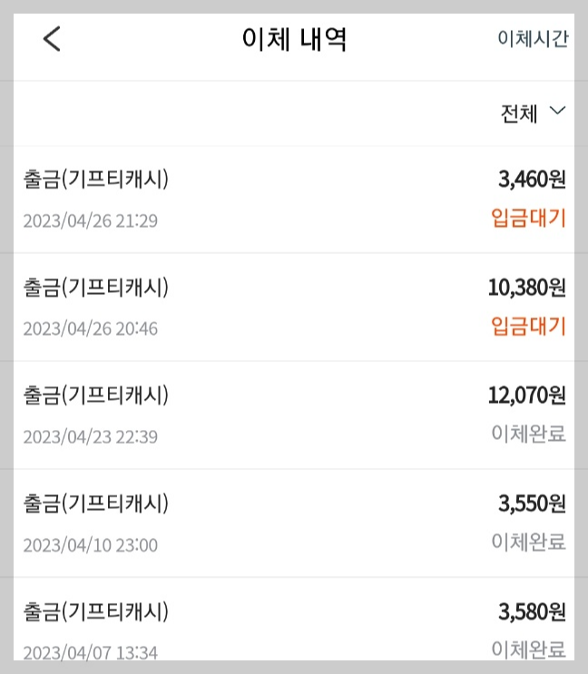 지급받은 캐시로 스벅 기프트콘을 구매 ▶ 바로 개인 계좌로 출금도 가능하답니다.